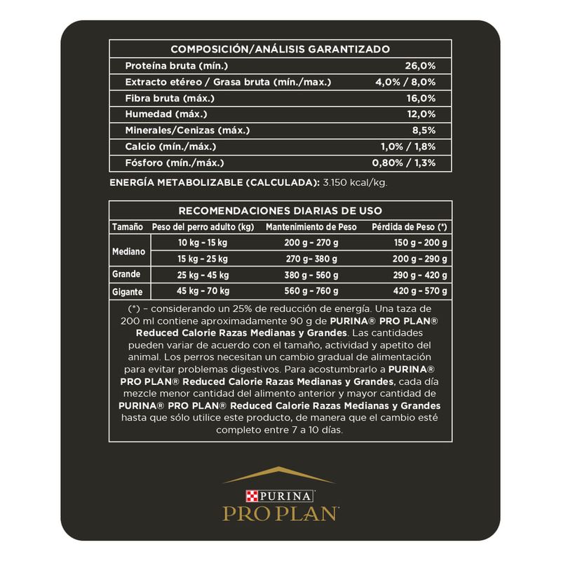 Pro Plan Reduced Calorie Perro Adulto Raza Mediana Y Grande x 3 Kg